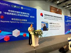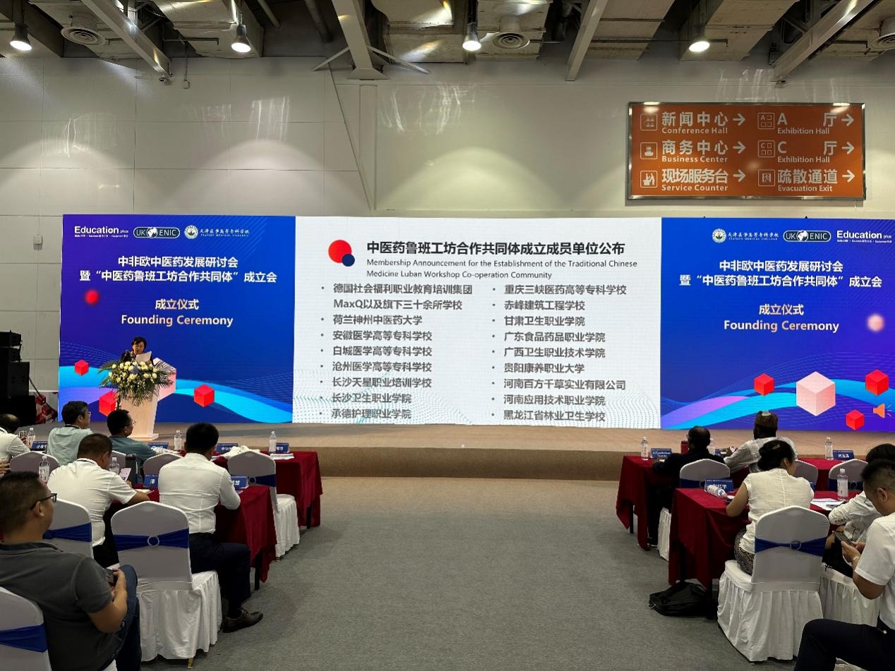 借助EducationPlus国际职业教育大会暨产教融合博览会这一重要平台,我校于8月17日召开了大会的平行会议即中非欧中医药发展论坛暨“中医药鲁班工坊合作共同体”成立大会。“共同体”是在天津市教育委员会指导下,由天津医学高等专科学校携手英国国家学历学位评估认证中心、德国社会福利职业教育培训集团(德)、德国人智学护理协会(德)、荷兰神州中医药大学(荷)、荷兰中医协会(荷)、天津市红星职业中等专业学校等国内外相关机构联合发起,其建立是助力鲁班工坊建设,推动中医药走向世界的关键性一步,对探索新时代中医药改革发展之路具有重要作用。此次“共同体”成立大会由天津医学高等专科学校、英国国家学历学位评估认证中心、天津市红星职业中等专业学校主办,遵义医药高等专科学校协办,共同探讨为现代中医药事业提供人才支撑的有效路径,提升中医药及相关专业内涵建设和国际化水平。