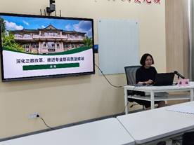 医学技术学院张秀丽院长结合专业建设实践,做了《医学美容技术专业现代学徒制改革与实践》专题介绍,从建设基础、项目实施、运行机制、特色与创新四个方面,总结了这一现代人才培养模式在我校医美技术专业的应用与实践。医学护理学院薛梅院长进行了《深化三教改革,推进专业群高质量建设》主题讲座,对标双高建设要求,结合我校护理专业发展,从教师、教材、教法改革等方面,详细介绍了护理专业群建设情况以及取得的改革成效。