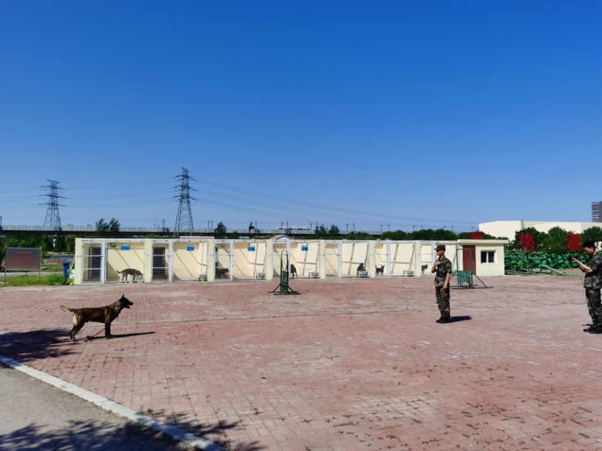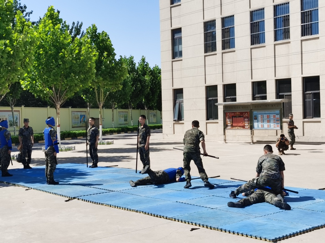 部队战士为师生展示军姿、队列、摔擒、警犬训练等科目。