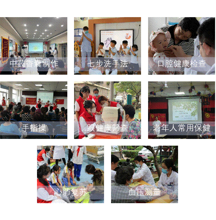 为充分发挥学校“双高校”办学优势,突显卫生职业教育示范引领作用,展示学校百年医学人文历史底蕴,在校团委、党委宣传部、科创处、教务处、各学院党总支的大力支持下,学校开展了一系列主题鲜明的职教宣传活动。本次活动聚焦“产教融合、科教融汇”,服务乡村振兴战略,瞄准“健康中国”建设,共设计卫生职教进社区、健康保健校园行、技能下乡送健康、应急救护科普行等4个模块,项目包含新生儿抚触、心肺复苏、海姆立克急救法、老年人手指操、传统文化作品团扇展示、口腔健康筛查、眼健康保健、中医养生保健、生活美容、老年人常用自我保健、按摩七步洗手法、营养膳食宣教、中药香囊制作等16个,服务社区5个、学校2所、帮扶村2个,活动覆盖500余人,小到4岁幼儿园小朋友,大到80岁老人均体验到了卫生职业教育所展示的健康魅力,津云、天津日报、现代职教网等主流媒体也对我校职教周活动进行了相关报道。
