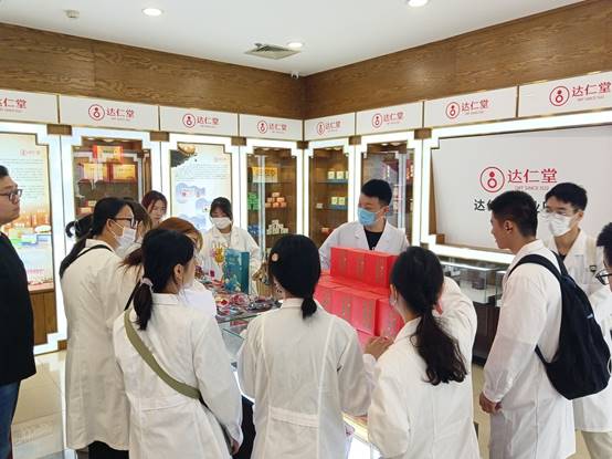 进入津药集团后,人力资源部赵老师首先带领同学们参观了津药发展脉络及企业文化展览馆,从津药的起源发展、专利产品种类、中药文化等方面结合历史给同学们介绍了基本情况。通过参观大家了解到津药集团旗下天津隆顺榕、乐仁堂、达仁堂等数家中华老字号企业与中药六厂等现代中药标志性企业同时并存并荣。其中津药达仁堂集团股份有限公司是国家级非物质文化遗产代表性项目“中医传统制剂方法(达仁堂清宫寿桃丸传统制作技艺)”、“中医传统制剂方法(安宫牛黄丸制作技艺)”、“中医传统制剂方法(隆顺榕卫药制作技艺)”的保护单位;历代达仁堂人恪守“炮制虽繁必不敢省人工品味虽贵必不敢减物力”的传统古训,树立“修合无人见,存心有天知”的自律意识,确保了金字招牌的长盛不衰,这些源自中华传统文化理念的职业价值观让同学们进一步感受了中医药发展的魅力。