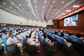 卢迪老师讲述了深耕护理行业34年、2021天津市十大护理领军人物、2023年中华杰出护理工作者、天津市人民医院护理部马宏文主任的先进事迹,当SARS来袭时,她主动请缨,面对新冠疫情,她亲赴战场指挥前线,始终坚持以患者需求为导向,以促进健康为目标,用博爱和奉献书写着神圣的天使之路,践行着“燃烧自己,照亮别人”的南丁格尔誓言,激励着新一代护理人奋勇前行。