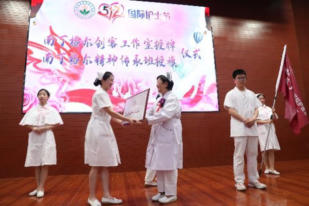 接着,南丁格尔奖获得者陈荣秀前辈为南丁格尔创客工作室进行授牌、南丁格尔精神传承班授旗。