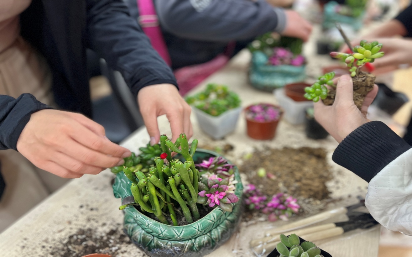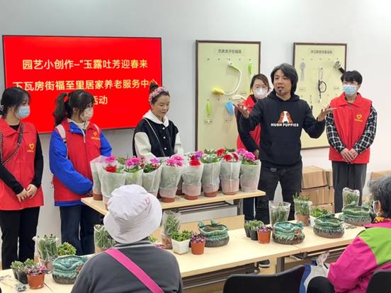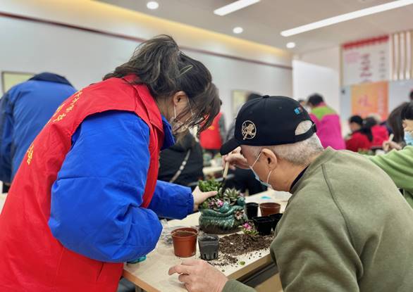 本次活动中,志愿者们协助并指导老人完成微景观插花,利用各种多肉盆栽整合在一起,老人们根据自己的审美打造了一盆盆属于自己的盆栽。志愿者们陪着老人聊天,为他们的日常生活增添了许多乐趣,也了解到了老人们的一些日常需求,为他们排忧解难。插花作品完成之后,志愿者与老人们进行合影留念,离开前,服务中心为老人们送上爱心盆栽。