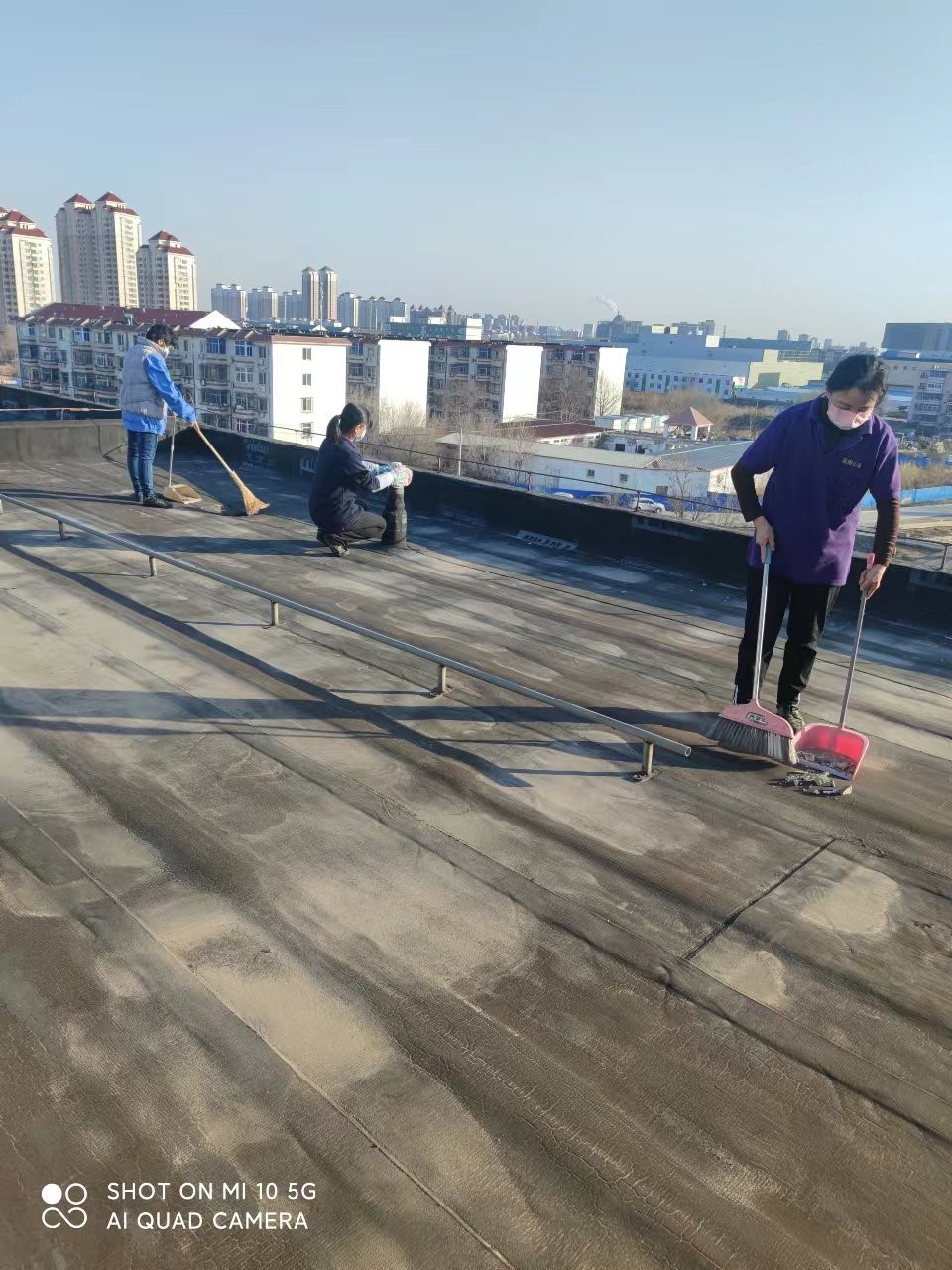 ★为做好冬季降雪准备,宿舍保洁对宿舍楼顶进行清理。