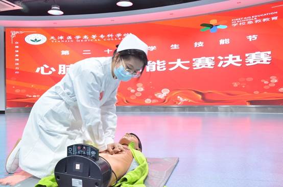左红书记在活动中指出,学生技能节作为我校“双高校”项目“打造技术技能人才培养高地”的重要建设内容,在普及应急救护、防灾避险知识技能,引导学生尊重生命、珍爱生命的同时,推动救死扶伤、大医精诚的健康文化与技能光荣、劳动伟大的职业精神同频共振,促进学生德技并修。近年来,约万余名学生接受了公众心肺复苏技术能力标准化训练,有效促进了心肺复苏技术在公众中的普及。进一步服务了健康天津建设战略,助力公众健康事业发展。