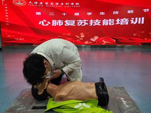 为了进一步服务健康天津建设战略,提高学生在突发事件和意外伤害事故中的应急处置和自救互救能力,第二十届学生技能节,按照教育部首批全国急救教育试点学校建设要求,积极推进大学生急救培训普及工作,将心肺复苏技能作为学生技能节的核心内容,面向5000余名在校生开展了专题培训和训练,并择优遴选294名同学进行急救技能精培,目前已完成培训环节并将择机进行技能竞赛。