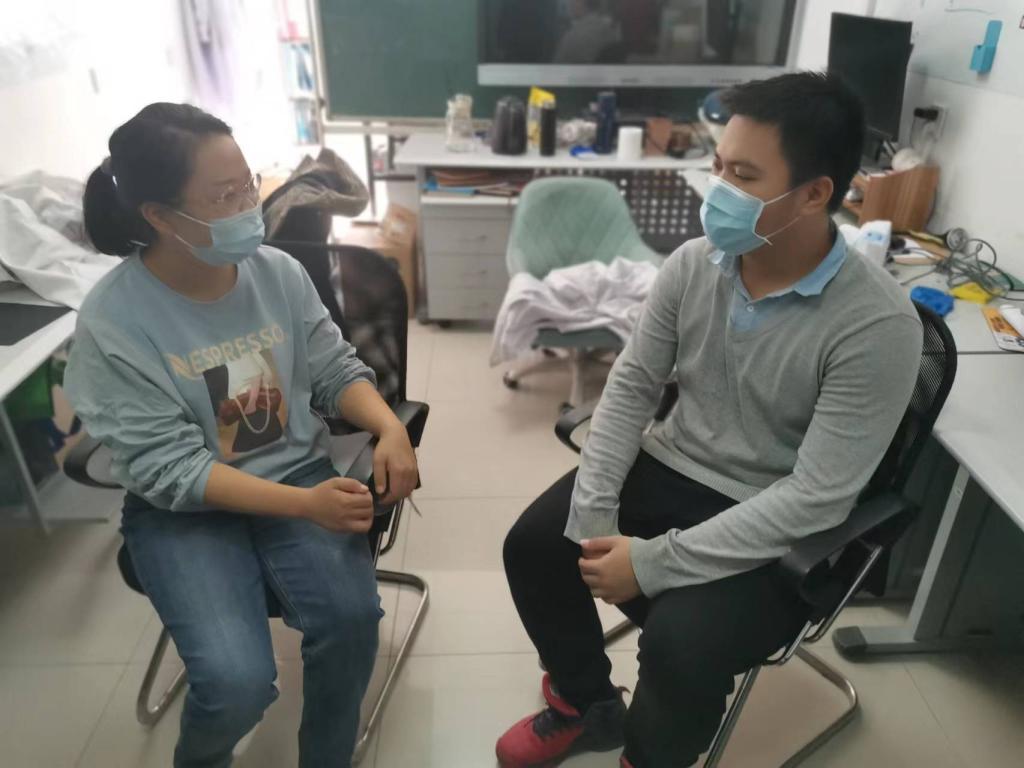 青年教师龚子珊老师和学生谈心