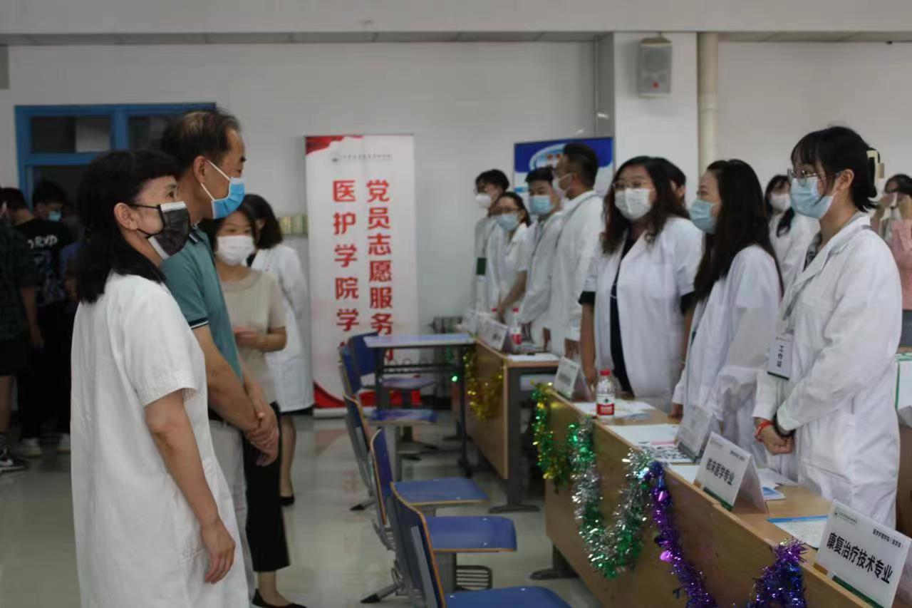 在设立的医护学院学生党员志愿服务岗上,学生党员志愿者积极配合老师参与迎新工作,热情洋溢向新同学介绍我校历史和发展,使学弟学妹们远离离乡的孤寂,让他们置身于温馨和谐的氛围中,感受到“第二故乡”的温暖。