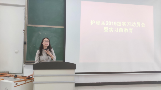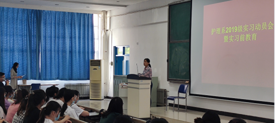 按照学校实习工作的统一部署和实习工作指示精神,保障2019级顶岗实习质量和学生安全,稳步推进顶岗实习各项工作,护理系认真筹备、组织安排此项工作,于5月28日下午在教学楼B203教室召开了2019级实习动员会暨实习前教育讲座,护理系实习负责人、学工负责人、2019级全体学生和辅导员以及护理专业优秀毕业生代表参加了此次讲座。