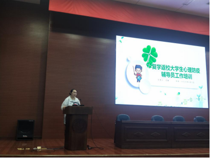 随后,大学生心理健康指导中心负责人以“面对疫情防控常态化,如何做好学生心理工作”为主题带来专题讲座,从加强学生心理健康教育引导、关注学生心理健康、熟练掌握各种突发情况的处理方式等方面为做好学生的心理工作提出了意见和建议。会上要求辅导员做好在校生的心理筛查工作,及时的发现问题,及时给予关注,并通过各种积极有效的途径帮助学生走出困境。