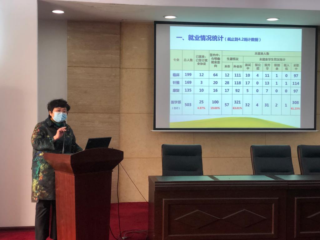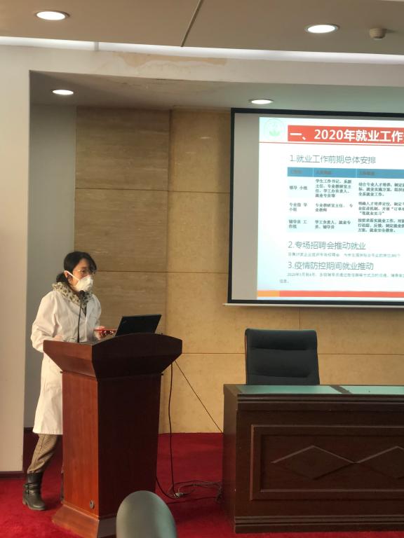 分管就业工作的校党委副书记、副校长左红在讲话中对就业工作提出了四点要求:一是各系要高度重视就业工作,要把做好就业工作当做一项重要的政治任务;二是各系领导要落实责任,靠前指挥,主动补位,协同联动,形成全员参与就业工作的机制,充分调动专任教师的主动性、积极性,为毕业生拓展就业渠道;三是加强思想政治教育及就业心理辅导,及时掌握毕业生心理状况及思想动态,为毕业生疏导情绪,缓解压力,特别是要对18名湖北籍毕业生给予重点关注和帮扶;四是就业数据统计工作要严谨准确,严格执行“四不准”工作要求。