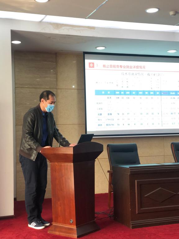 校党委陈振锋书记在充分分析了当前就业形势及就业政策后,对就业工作提出要求。一是在延续以往好的就业工作经验基础上,充分运用互联网、云平台等技术,创新就业工作的方式方法;二是指导学生树立正确的就业观,正确认识就业市场中存在的供需矛盾,正确分析学生的高期望值和用人单位的高标准之间的关系,准确定位,分类指导,稳步做好就业工作。