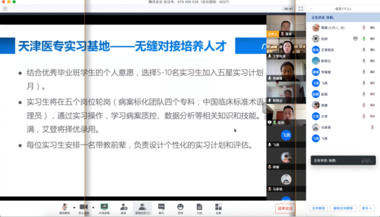 随后,校企双方就“天津医专实习基地—无缝对接培养人才”、“编码能力测试与DRG能力测试—用行业要求进行能力摸底”、“悦励学校账号/学生账号—以实战武器模拟实战”、“学分银行—务实的职业培训输出”、“在线教育平台—艾登学苑”、“病案继续教育合作—线上与线下”等方面进行了深入沟通。