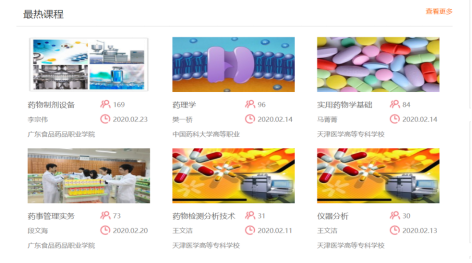 专业资源库被全国同类院校广泛使用。护理专业和药物制剂技术专业资源库现有标准化课程共30门,Mooc课程4门,疫情期间,药物制剂技术专业资源库建成资源近5000条,护理专业资源库资源数量由8157条增加至11168条,素材总量323.95G,资源活跃率达99.69%,被兄弟院校引用搭建职教云个性化课程1700余门。我校负责建设的《内科护理》课程在线访问量达8117462人,居最热课程榜第三名。