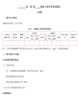 2.实施线上教学质量周报告制度。系部层面要求各系部总结分析一周教学运行情况、教学组织与实施、教学监控与评价、存在主要问题与改进措施,并总结典型经验与案例,形成系部线上教学质量周报告;学校层面总结全校线上教学开展情况,形成学校线上教学质量周报告,切实落实教委会议要求,进一步加强线上教学质量监控。