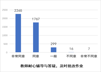 强互动环节,调动了学习兴趣;认为教师耐心进行线上辅导与答疑,及时批改课后作业的学生占比为92.6%。