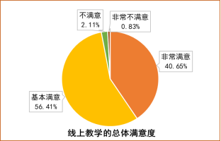 为进一步掌握教师教学和学生学习情况,及时调整教学方式,改进教学方法,提升教学质量,教务处于3月17日—3月19日统一组织学生开展线上教学质量评价与反馈,通过教学质量管理平台发放问卷调查形式开展,覆盖2018级、2019级各专业学生。本次调研回收问卷4354份,学生参评率达85.3%,充分收集学生的反馈与评价意见,经统计分析,学生对线上教学工作满意度较高,线上自主学习情况较好。