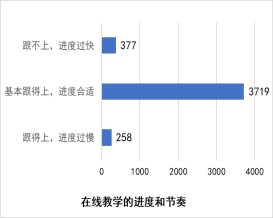 学生学习情况良好,每日线上学习时间基本保持在3-6小时,91.35%的学生表示可以跟上教师授课进度,能够大部分或全部掌握已讲授的知识的同学占比83.85%,73.77%的学生对线上自主学习效果评价为满意或非常满意。