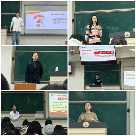 其他课程内容由校内老师讲授,内容包括《从小我到大我,谈入党动机和共产党员应有的信仰》、《不忘初心、牢记使命,争取早日入党》、《履行党员义务 行使党员权利 争做合格党员》、《贯彻落实党的二十大精神,发挥当代大学生先锋模范作用》、《中国共产党人的精神谱系》、《认真学习新党章,做新时代有为青年》。通过老师们的讲解,使学生更加清晰地认识到作为入党积极分子的责任、使命与担当,要将理论与实际行动联合起来,知行合一,深思笃行,为祖国的医药卫生发展贡献青春力量。