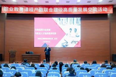 为贯彻落实全国教育大会精神和《教育强国规划纲要》精神,落实《关于深化现代职业教育体系建设改革的意见》要求,落实《教育部天津市人民政府关于探索现代职业教育体系建设改革新模式的实施方案》关于课程产教联合开发机制建设任务要求,打造可复制、可推广、可借鉴的职业教育课程教材产教联合开发新模式。1月10日,由天津市教育委员会指导,由天津市教育科学研究院、国家职业教育产教融合高端智库主办,天津医学高等专科学校、天津市经济技术开发区生物医药联合体、天津科技大学承办,天津市职业大学、天津轻工职业技术学院、天津电子信息职业技术学院、天津现代职业技术学院、天津交通职业学院、天津渤海职业技术学院协办的“职业教育课程建设高质量发展交流活动”在我校多功能报告厅成功举办,同期开展“天津市职业教育课程开发推广基地(生物医药)研究专场交流”。