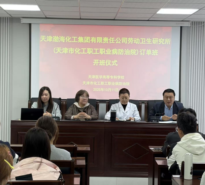 2025年10月11日,天津医学高等专科学校卫生健康管理学院预防医学专业与天津市化工职工职业病防治院(以下简称“化工职防院”)共建的“渤海化工职防院班”开班仪式顺利举行,该订单班的设立,标志着学校预防医学专业与化工职防院的产教融合进入实际运作阶段,也为“健康中国2030”战略下职业卫生领域人才培养提供了“毕业即上岗”的定向路径。