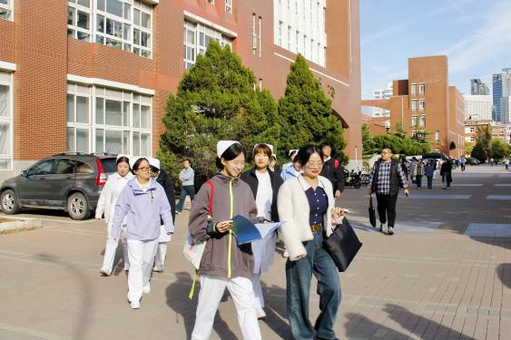 三校师生代表首先集体走进天津医科大学校史馆,在讲解员的专业引导下,循着时间脉络系统回顾该校自1951年建校以来的发展历程——从初期的学科奠基到如今的内涵式发展,从护理教育模式的探索到人才培养体系的成熟。过程中,师生们重点感悟“求真至善、德高医粹”校训精神如何融入护理人才培养全流程,从课程设置、实践教学到职业素养培育的具体体现。这场沉浸式校史研习,让三校师生清晰认知彼此的历史渊源与共同的护理职业使命,不仅强化了“医卫同源、育人为本”的理念认同,更为后续各环节的深度交流筑牢了思想根基。