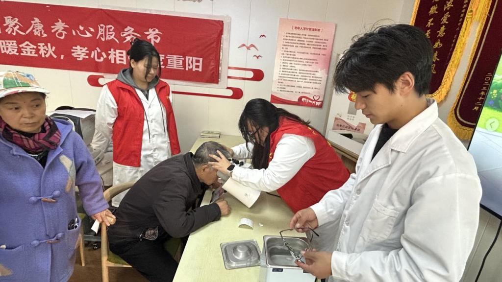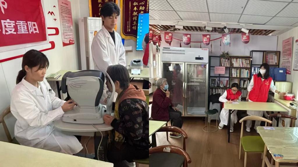 活动现场暖意融融,眼视光技术专业学生志愿者化身“光明守护者”,为老人们提供专业设备精准电脑验光、检测裸眼与戴镜视力、使用AI眼底照相机进行眼底健康筛查等服务,由专业的眼科医生解读检测结果并给出专业的眼保健建议,同时为戴镜老人用超声波清洗机清洗眼镜,耐心解答眼部健康疑问。许多居民表示,这样的活动既实用又贴心,让他们在家门口就能享受到专业的眼健康指导。