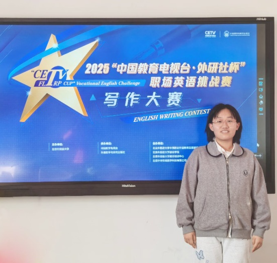 近日,2025“中国教育电视台・外研社杯”职场英语挑战赛写作全国决赛圆满落幕。我校23级社区护理专业学子云玉洁凭借扎实的语言功底、出色的职业素养与稳定的赛场发挥,从全国28个省、自治区、市千余所职业院校的精英选手中脱颖而出,斩获全国二等奖,也是天津三位参赛选手中的最好成绩,为学校赢得荣誉。