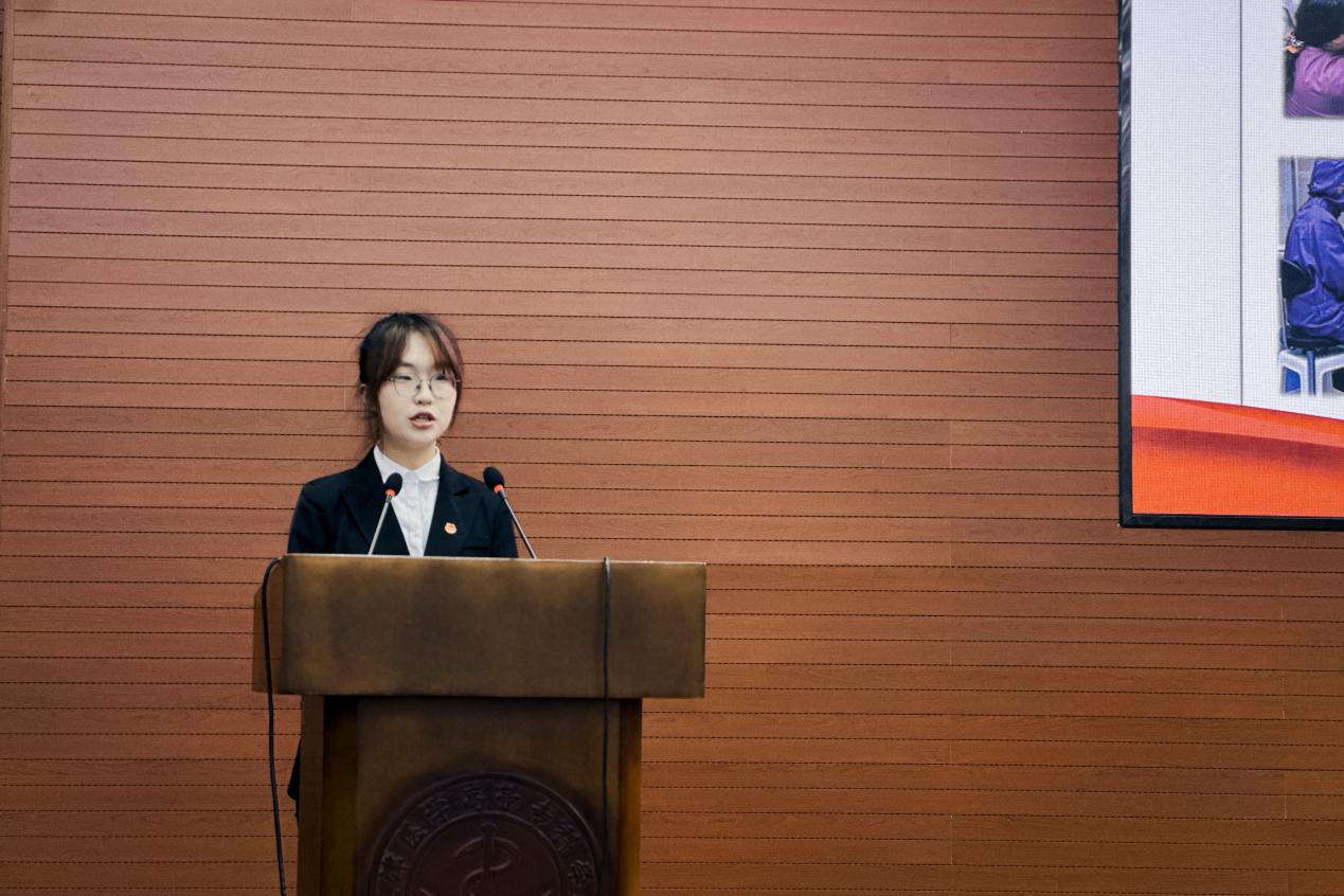 校党委舒珺书记在总结讲话中向获奖师生表示祝贺,并总结学校近年学生工作成效。她对全体学生提出三点期望:一要坚定理想信念,从前辈榜样中汲取力量,在服务人民健康中践行初心;二要练就过硬本领,主动学习、勤于实践,在国家需要时挺身而出,投身卫生健康事业;三要涵养职业精神,合理规划学业生活,全面发展,展现医学生良好风貌。她勉励大家牢记习近平总书记教诲,以奋斗擦亮青春底色,为人民生命健康贡献智慧与力量。